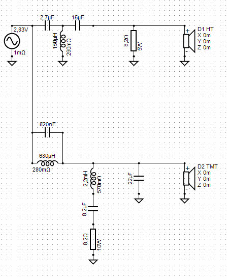 Ein paar Cent lassen sich sparen, wenn man dem TMT nur ein 6dB Filter verpasst, 2 Widerstände entfernt und die restlichen Bauteile ein wenig anpasst: