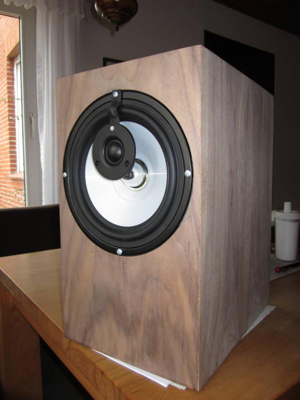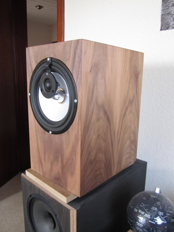 genau deine HT-Befestigung hab ich mir übrigens sehr oft und intensiv angeschaut. Die finde ich sehr pfiffig und sollte ganz ähnlich aussehen.. nur kürzer, also nicht über den Chassierand hinaus. Auch hätte ich gerne Fasen wie bei deiner gehabt, aber aus furniertechnischen Günden darauf verzichtet.