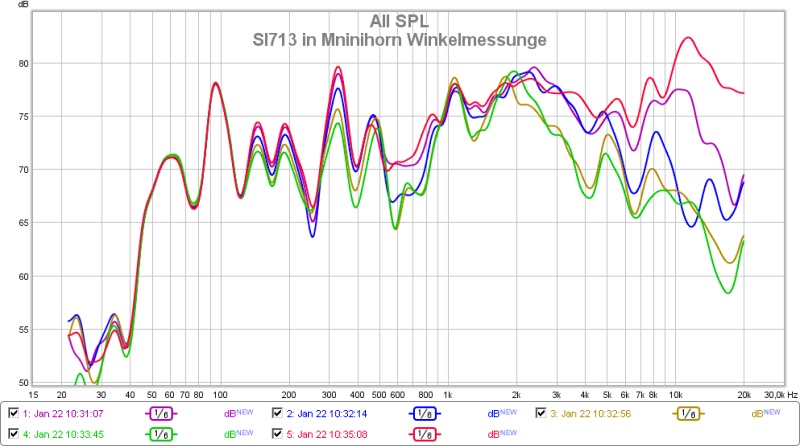 0, 10, 30, 45 und 60 Grad Raummessung; Alles 1 Meter Abstand, fullrange mit erträglich leisem Pegel