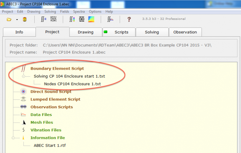 Es ist m.E. sinnvoll, die Examples zu öffnen und sich das einfach mal anzuschauen. Die Skripte, mit denen ich zunächst arbeite, lehnen sich grob an das Beispiel 'Speaker Cabinet SP38' aus (C:\xxx\RDTeam\ABEC3\ABEC3 Examples\BEM\Loudspeakers\Speaker Cabinet SP38) an.