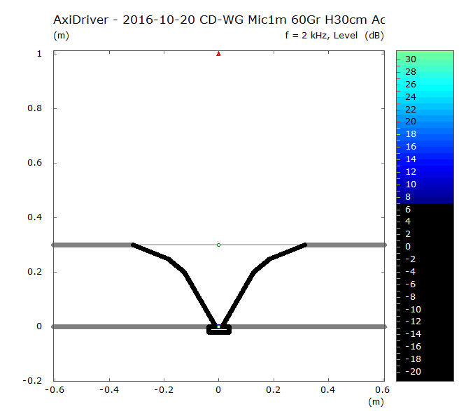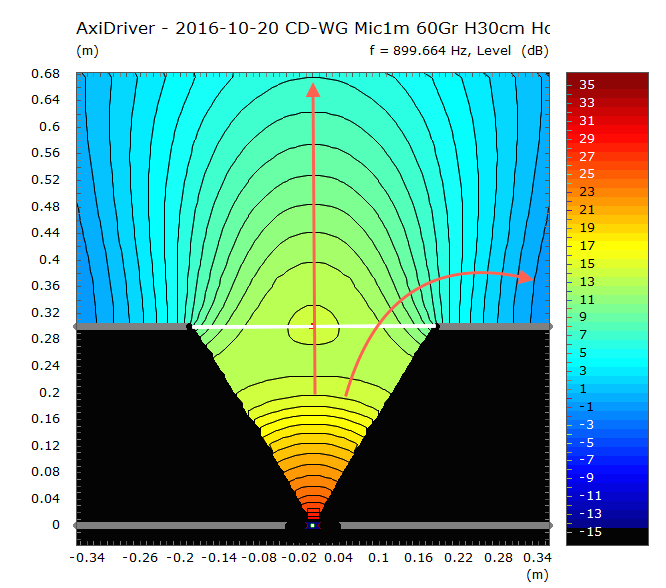 Also mal anschauen. Hier nochmal das schon aus den letzten Beiträgen bekannte WG mit 60° Öffnungswinkel und 30cm Länge, Abstrahlung bei 900Hz: