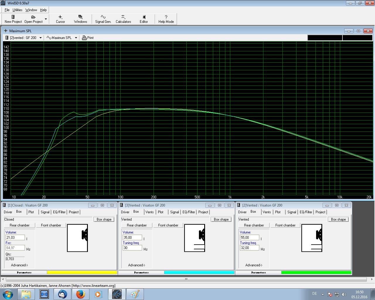 Die Chassis werden noch beschaltet und in eine Schallwand eingebaut, das berücksichtigt die Simulation nicht.