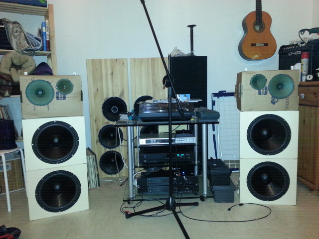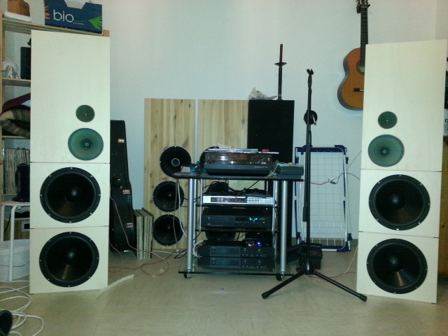 Die Bässe werde ich paarweise pro Wand einsetzen, 1 Aufbau mit 2x 12", und 1 Versuch mit 10" und 12" parallel