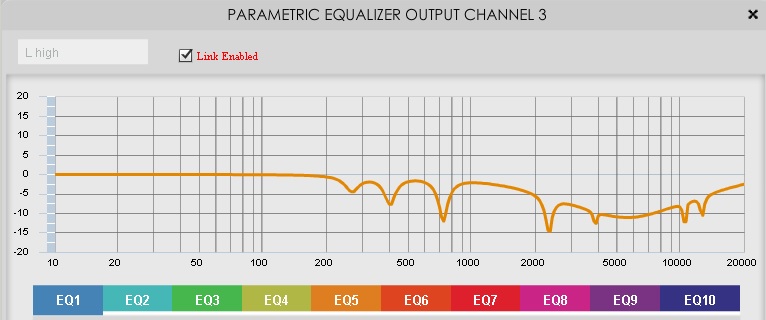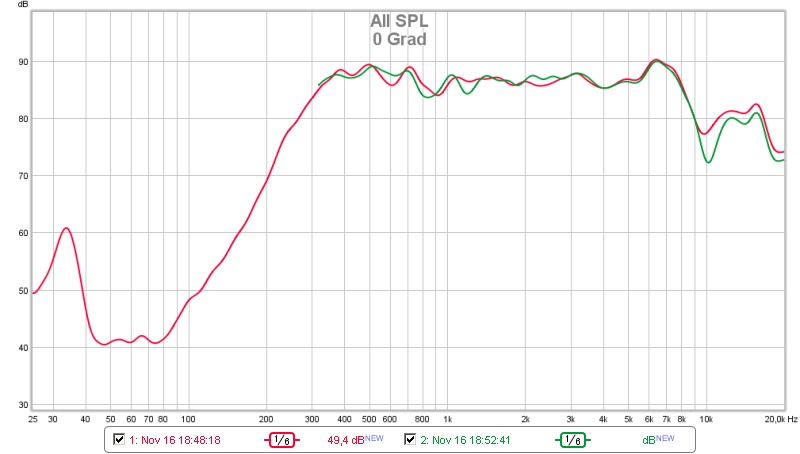 Der Bass bekam ein Lowshelf; Mittenfrequenz:53Hz/+9dB/Q:0,6 und wird mit 95Hz/12dB getrennt