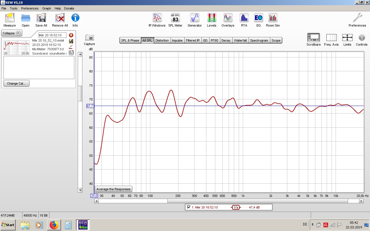 die Messwerte unter 200Hz sind raumbedingt, bei 2 Meter Messentfernung sieht das wieder ganz anders aus; 30 Hz sind dann schon wieder zu laut. Werde den lowshelf wohl noch etwas dezenter ausführen müssen.