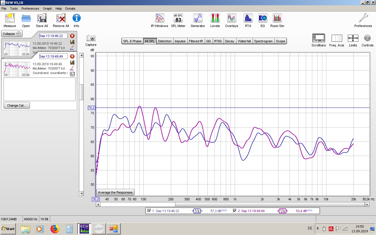 leider produziert Einer meiner RFT, seit gestern, ein dezentes schnarrendes Nebengeräusch. Also habe ich kurzfristig auf Blaupunkt umgebaut. Da habe ich auch ordentliche Vergleichmessungen. Nach Messen habe ich den Basspegel um -3dB angepasst.