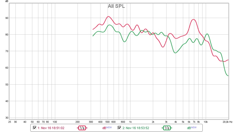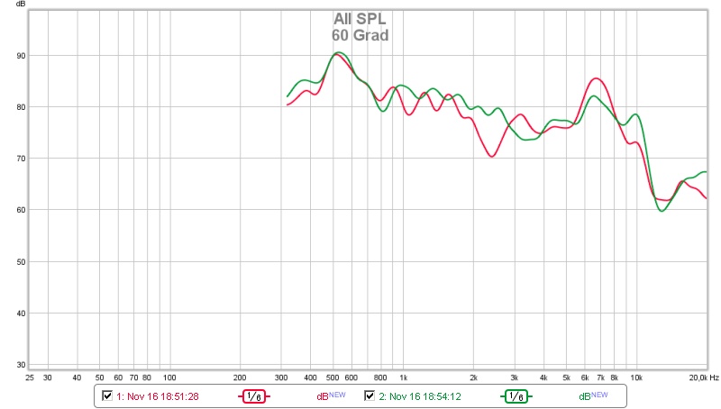 um folgende Messungen (links/rechts 1 Meter Abstand, geringer Pegel) zu erhalten habe ich bei 15kHz einen highshelf mit plus 16dB gesetzt.