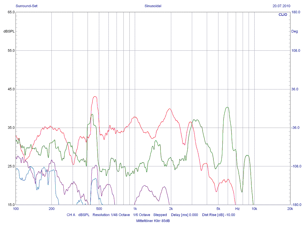 Bei kleinen Pegel ist der Klirr durchschnittlich, bei hohen Pegel ist der Zuwachs für einen Tieftöner eher gering.