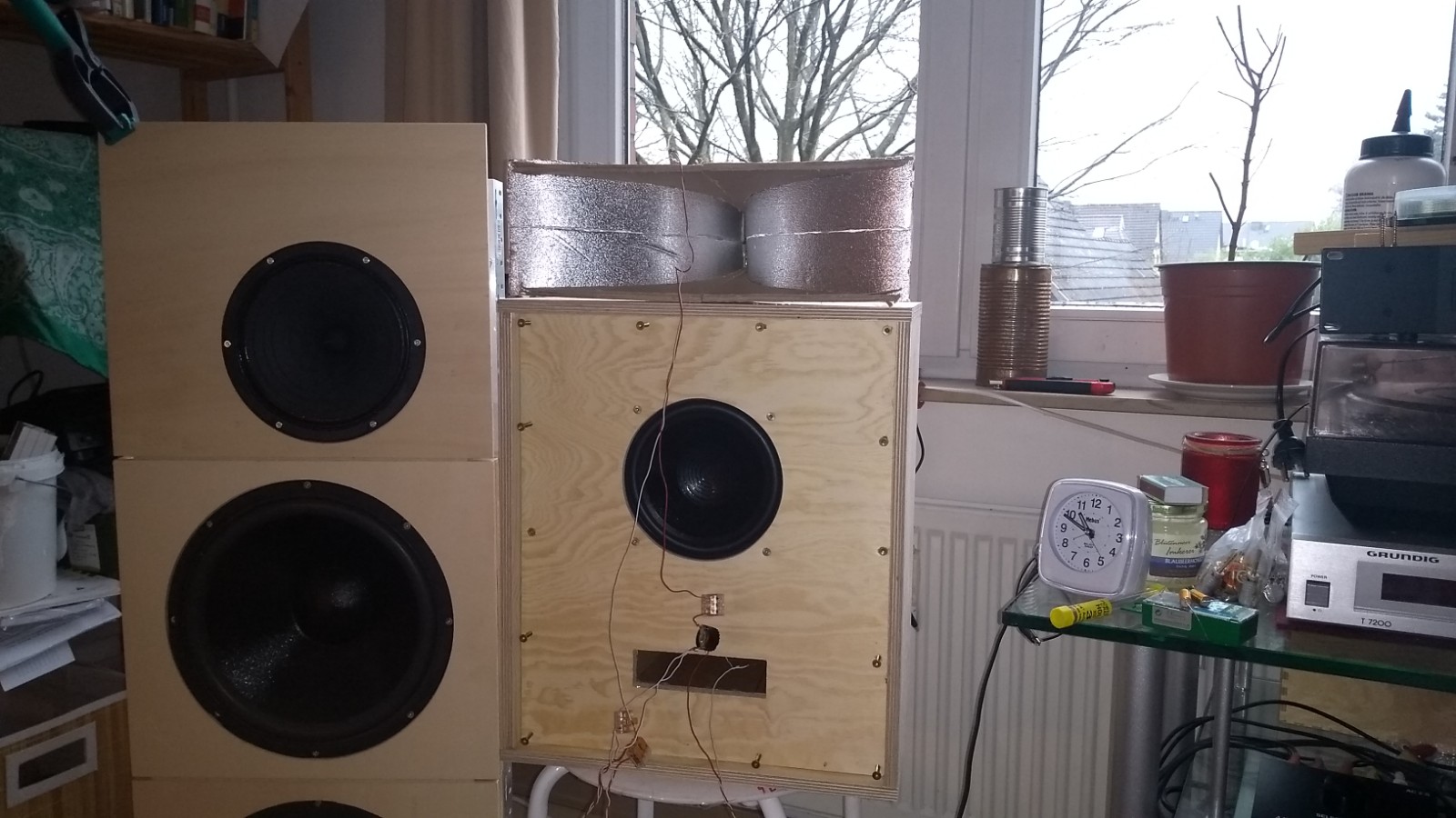 Ich habe das Visaton SL713 Hörnchen auf die KIste gestellt und provisorisch über Kondensator dazugeschaltet. Nicht schön...
