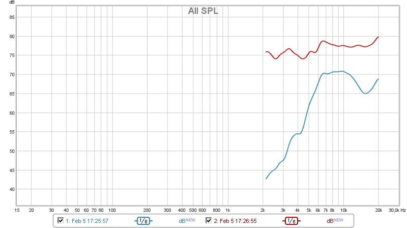 Horizontal völlig gleich, aber vertikal war bei der höheren Trennfrequenz der Verlauf unruihger.