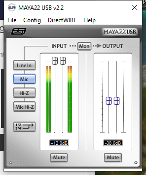 Wenn ich die Kalibrierung aufrufe kriege ich dort keinen Pegel vom Mikro. Das Maya22 Control Panel zeigt ihn mir aber an (grüne Balken), also funktioniert das USB-Audio.
