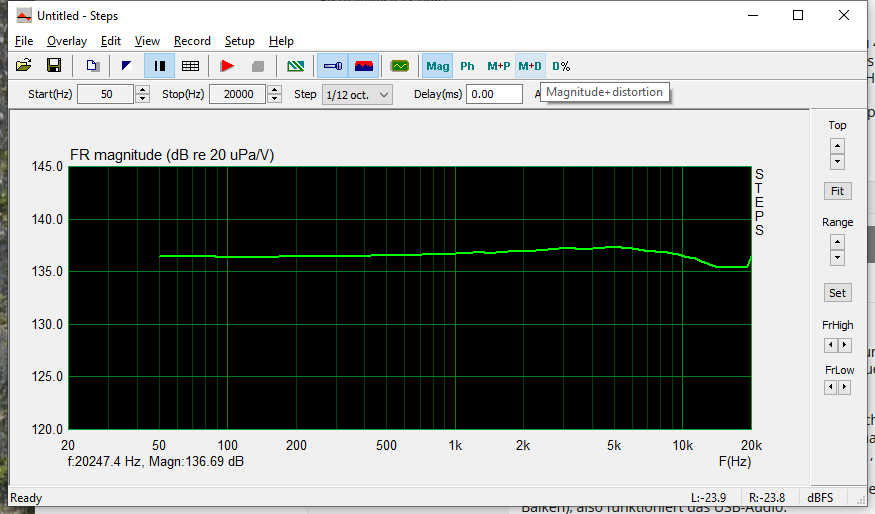 Aber ich kriege den Setup nicht wieder zum Laufen. Ich musste seit meinen Messungen vorletzten Sommer meinen Laptop neu aufsetzen und habe offensichtlich versäumt, mir damals den Steps-Setup zu speichern. Vielleicht liegt es auch an der unterschiedlichen Arta-Version. Damals hatte ich 1.91, jetzt habe ich die neue Version installiert, 1.93.