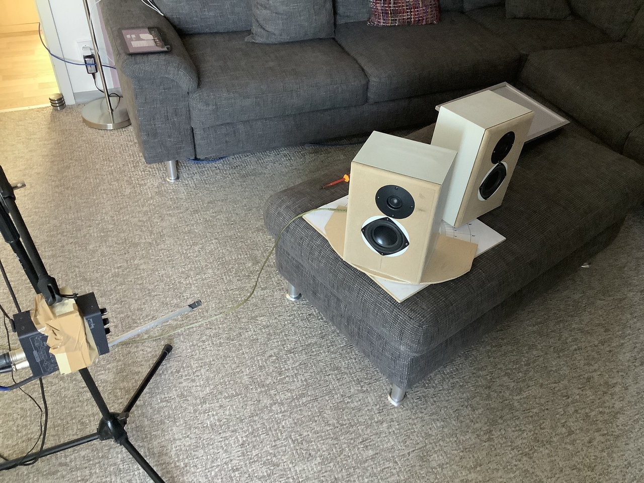 Die brutale 4Khz-Reso des TMT hatte hier nur einen Sperrkreis und wird noch mit einem Sauger bekämpft. Der HT ist mittlerweile noch ein wenig leiser. Aber die angestrebte 6DB-Weiche ist mit einigen Filtern machbar.