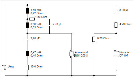 im TMT-Bereich ist nebe dem Tiefpass ( 1,5mH) eine Sperrkreis auf 4KHz mit hoher Güte und eine Sauger auf 4Khz mit niedriger Güte eingebaut.