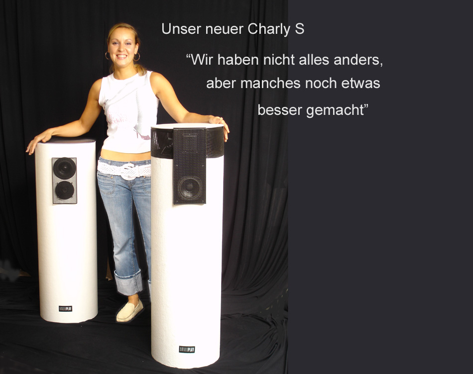 Die echte Charly VON der Fa. Audioplay gab es in einer S und einer L Version, beide hatten den Tieftöner normal eingebaut. Ein korrekte Anzeige bei Ebay sieht dann so aus:
