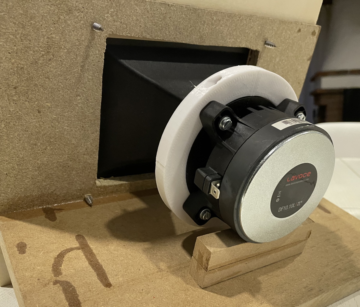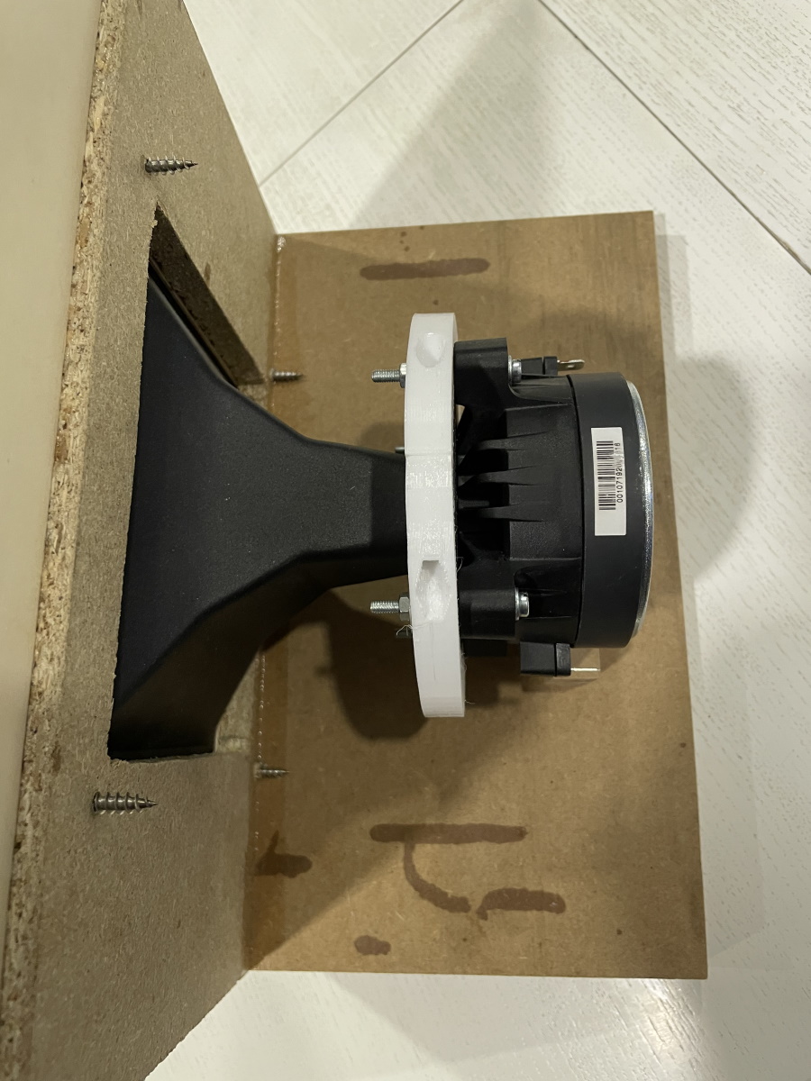 Was Du evtl. noch versuchen solltest, ist den Übergang zw. Treiber und Horn mit irgend 'ner "Matsche" (SicaBond o.ä.) zu verstetigen und / oder die Dicke der Adapterplatte zu variieren.