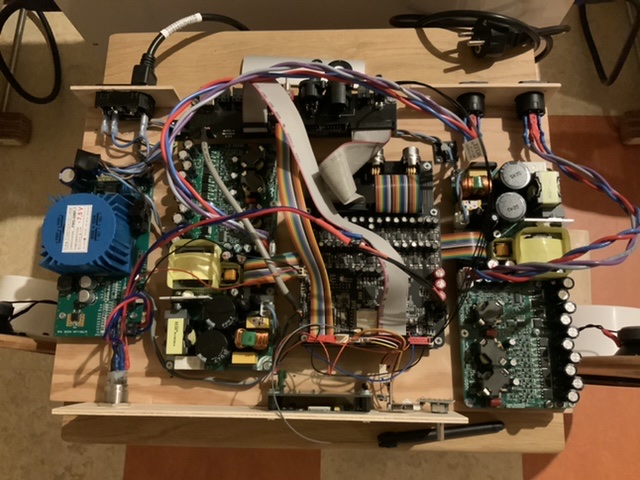 Im Gepäck haben wir neue OBs (Visaton-Variante) und einen Testaufbau mit Auverdion DSP/DAC, mit Hypex nCore auf Holzplatte.:built: