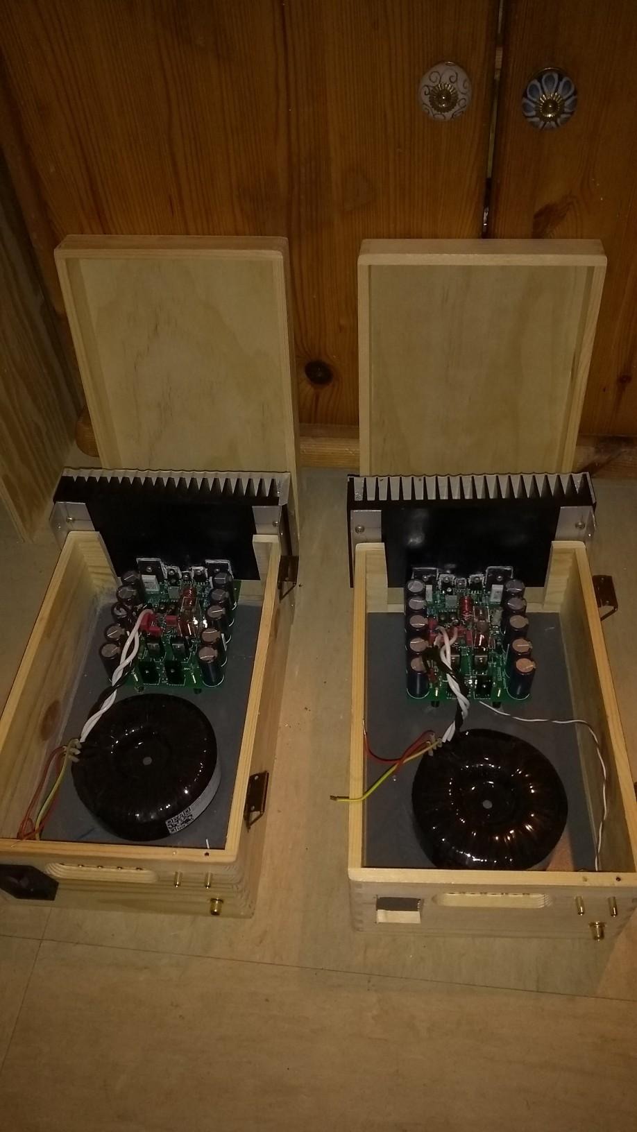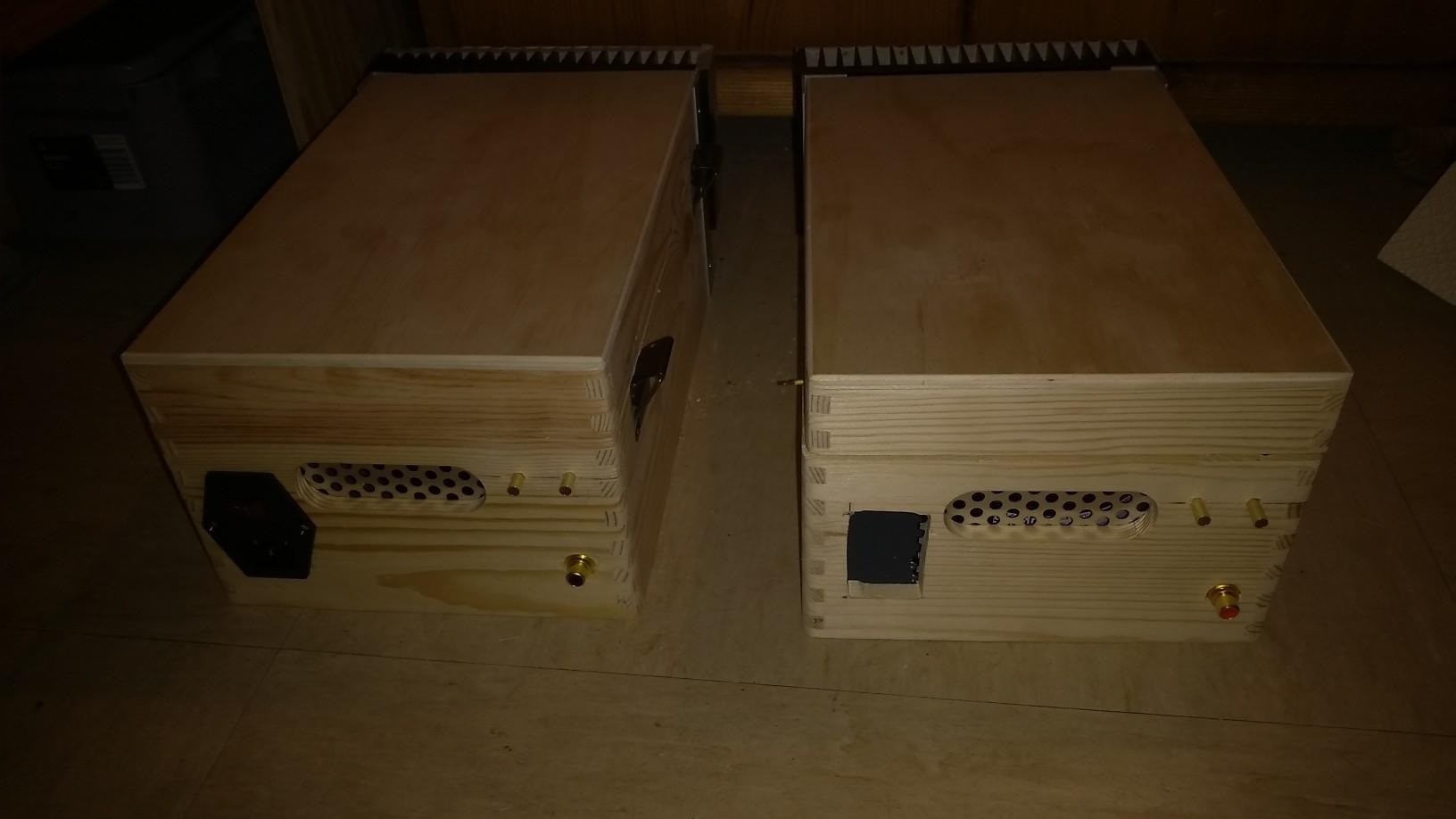 Die Endstufen spielen beide auf und ich beobachte die Wärmeentwicklung, ob in den Deckel noch Lüftungslöcher müssen.
