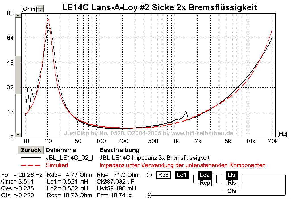 Ein Auftrag hat die Reso um gemütliche 20Hz nach unten geschoben. Qt ist von 0,68 auf 0,48 gesunken. Das geht eindeutig in die richtige Richtung. Eben habe ich den zweiten Auftrag durchgeführt, diesmal die Rückseite der Sicke. Bin gespannt, wo es diesmal hingeht.