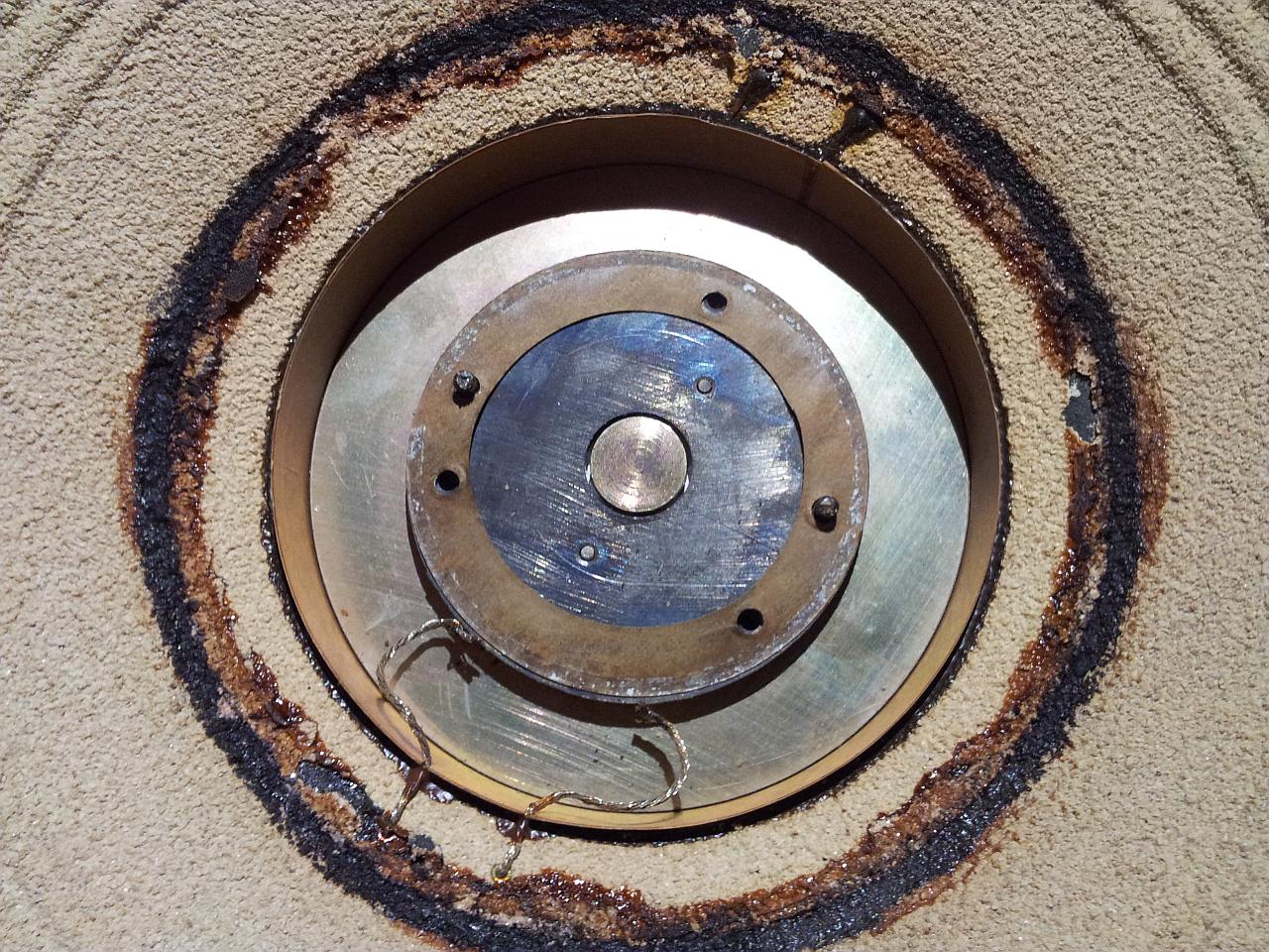 2. Die Membran vom Hochtöner bildet mit einem Gussring eine Einheit, die man abnehmen kann. Zuleitungen ablöten und abheben: