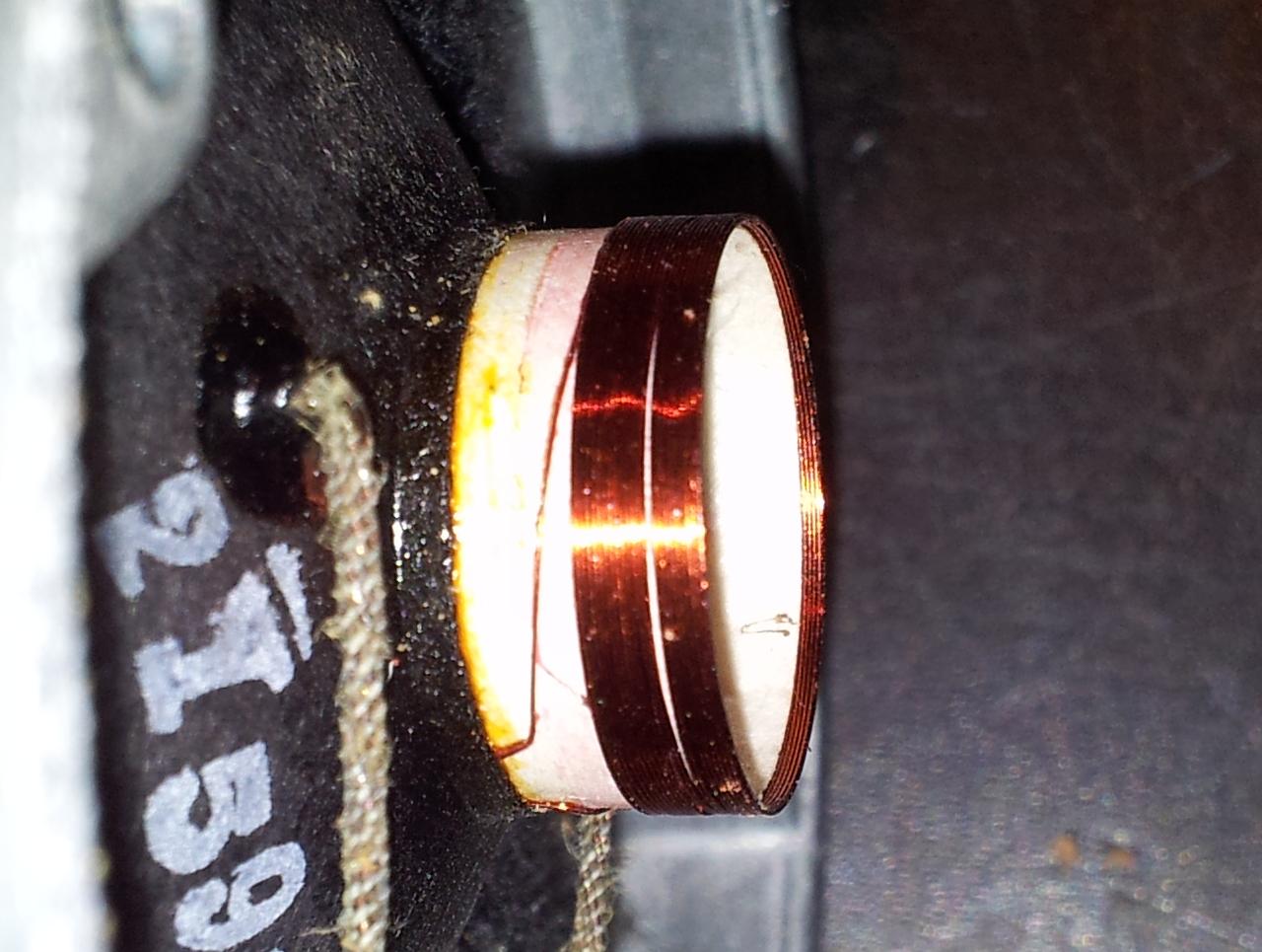 Hi Olli, ich habe den Verdacht das sich die ganze Spule nach unten verschoben hat. Normal steht die Spule mit Sicherheit nicht über den Träger hervor. Auch kann man denke ich andeutungsweise erkennen wo die Spule früher mal gesessen hat. ca. 3 mm weiter in Richtung Membran.