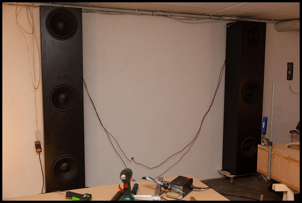 Heute haben wir die vier Subwoofergehäuse zu dritt aufgestellt. Am Ende war es doch nicht schwer, wie ich anfangs dachte.