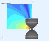 Beim im Folgenden simulierte Reflektor wurde (i) der Übergang vom 120°-Kegel zur Kugel händisch gerundet und (ii) unten zum HT hin noch eine Spitze angefügt, die fast bis zum HT in den Konus ragt. Das sieht so aus: