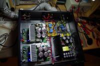 Mein derzeitiges Projekt ist der IRAUD 2000. Aufgebaut habe ich 2 x IRAUD 2000 jeweils im Bridgemode mit einem 2000er RXE Schaltnetzteil von Connex. Bei den IRAUD 2000 habe ich die 4 x 80V Kondensatoren gegen 100V Kondensatoren ausgetauscht, da ich die Module mit 75V betreibe. Die Leistungsaufnahme ist im "ohne Musik Modus" bei 57-58 Watt insgesamt, also mehr als doppelt so viel wie meine Connex oder die GreenWonder.