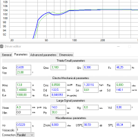 Na ja, da zeigt wohl die Physik die Grenzen auf. Das muss nicht an den "bösen" Simulationsprogrammen liegen. Der Dayton hat ein Verschiebevolumen Sd * Xmax = 124 cm² * 6 mm = 74 cm³, der Monacor hat 137 cm² * 3 mm = 40 cm³. Der genannte Tangband hat 140 cm² * 6 mm = 84 cm³, also mehr als das Doppelte des Monacor.