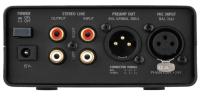 1-Kanal-Low-Noise-Mikrofon-Vorverstärker für Netz- oder Batteriebetrieb • 1 Mikrofoneingang, XLR, sym. • Verstärkung 11-stufig 20-70 dB • LED grün/rot für Betrieb/Peak • Phantomspeisung +24 V zuschaltbar • Mikrofon-Phasenlage umschaltbar • Lo-Cut 100 Hz, Hi-Cut 12 kHz, 12 dB/Okt., schaltbar • 1 Vorverstärker-Ausgang • 1 Stereo-Line-Eingang • 1 Stereo-Line-Ausgang • Pegelregler und Panoramaregler zum Abmischen des Mikrofonsignals auf den Stereo-Line-Kanal Technische Daten: Frequenzbereich: 20-20000 Hz