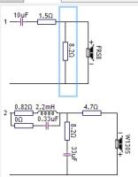 ... um Gottes Willen keine (!!!) Widerstände im Tieftonzweig (!!!), einzig ein kleiner Reihenwiderstand (<=1,5 Ohm oder sowas) in Serie zum Parallelkondensator kann(!!!) zum Modelieren der fallenden Flanke manchmal sinnvoll sein, aber bitte nichts, was den "Nutzpegel" verändert (und nebenher auch die Güte und damit Deine gesamte Gehäuseabstimmung) !!! Außerdem verlierst Du sinnloserweise Wirkungsgrad.