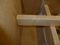 Habe die Streben nachträglich eingeleimt. Dabei gib es ja das Problem, dass man sie nicht wirklich press zwischen die Gehäusewände bekommt. Deshalb habe ich sie zweiteilig gemacht, mit 15° Schrägschnitt. Durch leichtes Verschieben auf der schiefen Ebene lassen sich hohe Kräfte erzielen. Eben wie mit einem Keil. Der flüssige Holzleim ist dabei ein gutes Schmiermittel.
