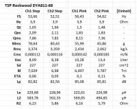 Alle Messungen des Rockwood DYA811-68 in einem gut gestopften Testgehäuse mit 24x38 cm Schallwand und 27 cm Tiefe auf Achse des Chassis in 75 cm Entfernung.