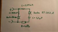 Der Bass hat eine 0,22mH Spule in seiner Zuleitung, parallel zur Spule liegt 1yF