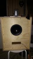 ich würde den HT etwas nach oben verschieben, so dass Du nicht Mittig best. Dürfte das Abstrahlverhalten beim großem Chassis weniger beeinflussen.