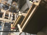 Bei der zweiten Kiste fehlte in der Mitte der Anpressdruck und sehr kleine Lücke entstand, es Quoll kein Leim. (Eventuell Schleiffehler an der Außenkante? Egal! ) Dort habe ich einfach einen Klotz eingelegt und einen kleinen angeschnitzten Keil eingeschlagen.Das hat funktioniert, die Lücke ist geschlossen. Es sollte überall ein wenig Leim austreten. Niemals zu wenig nehmen, lieber zu viel. An den anderen Kanten war ales i.O..