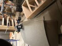Um die Fräse sicher halten zu können, wird einfach ein dünnes Brettechen unten an den Bogen für die OF geklebt. Darauf kann die Fräse später gleiten.