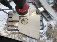 Du kennst aber schon den Trick, wie man mit einer Lochsäge ohne Brandentwicklung arbeitet? Wenn ich mir die Bilder so angucke eher nicht... https://www.youtube.com/watch?v=HI1wX-Ze8xQ (ich würde da aber eher empfehlen so 3-4 kleinere Löcher, so 10-12mm zu Bohren, das sollte dann noch besser funktionieren)