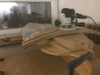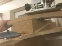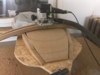 Zunächst musste ich die fixe Frässchablone noch so zurechtsägen, dass die OF-Schablone auch hindernisfrei der Kontur folgen kann: :built: