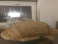 Dann habe ich die Überstände mit dem Bandschleifer auf 3mm geschliffen und mit dem Exzenterschleifer den Rest erledigt. So ging es am schnellsten. Man kann das auch mit der Oberfräse erledigen oder den Bandschleifer weglassen. Dann muss man aber genauer arbeiten.