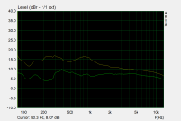 stoneeh schrieb:ausser dass das Isemcon empfindlicher ist (bei mir gar, vorhin bei der Pegelkalibrierung eben herausgefunden, um den Faktor 3!).Echt? Ich hätte fast schwören können, dass das ECM-40 empfindlicher war, aber ein paar Tage ist der Vergleich ja jetzt schon her, vielleicht zu viel für mein altes Köpfchen.... :o Ich schaue morgen mal nach. Viele Grüße, Michael capslock schrieb:Danke. Wenn das absolute Werte sind, dann ist man auch bei der Klirrmessung mit dem ECM nicht vom Rauschen limitiert Gerne. Die Werte stellen korrekt pegelkalibriert das dar, was grad von der Kette in dB SPL aufgenommen wird. Im Fall der Messung in Post #26 mit Soundkarte und Pre-Amp, in der Messung in Post #32 ohne Soundkarte und Pre-Amp (wie gesagt, rauskorrigiert). In letzterem Fall ist das aufgenommene also das Eigenrauschen des Mics und Umgebungsgeräusche. Da quasi komplett gedämmt / gedämpft, sind die Umgebungsgeräusche (fast) Null, und (fast) nur der Noise des Mics verbleibt. capslock schrieb:PS: Die Mittelung in Arta ist schon über Schallpegel und nicht über die Signalspannung? Denn bei Spannung würde sich das Rauschen wegmitteln. Ich habe die Ergebnisse einfach in der Anzeige mit 1/1 Oct. Smoothing geglättet. Schöner ging's wenn man den Noise einfach recht langfristig aufnehmen würde.. dadurch müsste sich der Verlauf auch irgendwann glätten. Noise schwankt, aber über Dauer sollte er eigtl. glatt, d.h. die Energie ausgewogen sein. Azrael schrieb:Echt? Ich hätte fast schwören können, dass das ECM-40 empfindlicher war Heute gemessen hatte das EMX 7,16 mV, das ECM 2,38 mV. Nicht ähnliche Verhältnisse bei dir erwarten - von Serienstreuung und Einflüssen von Alterung, Gebrauch etc. ist auszugehen. Wird mancher hier kurios finden, aber ich bin vor dem Kauf über einen Test des EMX gestolpert, in welchem der Autor behauptet hatte nach ein paar Jahren hätte sich die Empfindlichkeit seines EMX halbiert! Somit auf jeden Fall, wenn pegelkalibriert eingesetzt, die Kalibrierung öfters überprüfen!