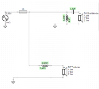 Und es macht zwar noch keinen Sinn die Weiche zu diskutieren, bevor die Messungen nicht wirklich ordentlich gemacht sind, aber bei Deinem Hochpass sind Kondensator und Spule in der falschen Reihenfolge. Diese Weiche besser nicht mehr verwenden!!! Wenn Du Pech hast, himmelst Du Deinen Verstärker. Und es gibt nur ganz wenige gute Gründe vor einem Tieftöner einen Ohmschen Widerstand in Reihe zu schalten. Ich vermute, Du hattest keinen guten Grund.