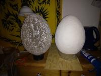 Das 1. Ei ist schon mit einer ersten Schicht Pappmaché stabil genug. Aber ich mache noch eine Zweite drauf, wenn ich die Ringe einlaminiere. Das ist der Plan.