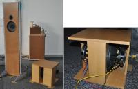 3-wege-box mit audiovolver (nicht die schallwände) - ich saß im sweetspot. die vorführung hat ganz eindruckvoll gezeigt, was der audiovolver kann. als die mode korrigiert war, war der bass eine wucht. der mht spannte einen raum auf, der einen den hifi himmel erblicken ließ. alles das brach sofort ab, als der av ausgeschaltet wurde. der mundorf amt hat micht erst gestört. aber der ist schon klasse. wo es sein muss knallt der richitg, kann aber auch anders. der mitteltöner war ebenfalls dynamisch eine wucht (phl).