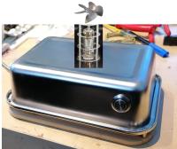 2. Die Oberfläche der Schale zu erhöhen, also einen Metall-Mettigel draus machen. Das müssen ja keine Kühlkörper-Finnen sein, das können einfach von unten durchgesteckte Schrauben sein oder Fake-Röhren-Gehäuse oder irgendwas, was einfach die Oberfläche der Schale etwas vergrößert und idealerweise ein bisschen Kamineffekt macht.