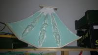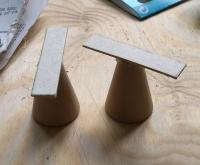 Beide müssen jetzt trocknen, dann geht es irgendwann weiter. Der Überstand wird weggeschnitten. Das war mit Heißkleber fixiert, damit es schneller die Form hält.