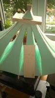 Den über stehenden Bauschaum abgeschnitten und groh geschliffen, damit im nächsten Schritt, Außen, die Pappstreifen drauf können.