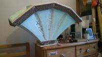 Aussen rum plane ich Wellpappe, 1 bis 2cm hochkant und den Abschluss mit Pappmaché.