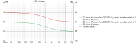 ArLo62 schrieb:...Wie sieht das denn mit der Phasendrehung am Kondensator aus? ... Joern schrieb:... dieses Phänomen ( hier vermeide ich mal "Problem" ) besteht doch nur "statisch" wenn in Parallelweichen gedacht wird... Was meinst du damit? An idealen Treibern verhalten sich serielle und parallele bzgl. Phase an der Trennfrequenz doch exakt gleich. Angehängt ein Beispiel mit Trennung bei 1000 Hz, einmal parallel, einmal seriell. Die serielle Weiche unterscheidet sich n der Phase erst unterhalb von 100hz, d.h. weit von der Trennfrequenz entfernt Parallel: .[ATTACH=CONFIG]71283[/ATTACH][ATTACH=CONFIG]71284[/ATTACH][ATTACH=CONFIG]71285[/ATTACH][ATTACH=CONFIG]71286[/ATTACH][ATTACH=CONFIG]71287[/ATTACH] Seriell: [ATTACH=CONFIG]71288[/ATTACH][ATTACH=CONFIG]71289[/ATTACH][ATTACH=CONFIG]71290[/ATTACH][ATTACH=CONFIG]71291[/ATTACH][ATTACH=CONFIG]71292[/ATTACH]