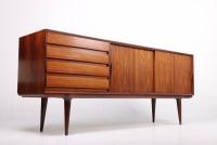Mit kühlen Wandfarben und warmen Mid-Century Akzenten in der Einrichtung, gab es bereits ähnliche Sidebaords in Richtung wie Palisander / Mahagoni: